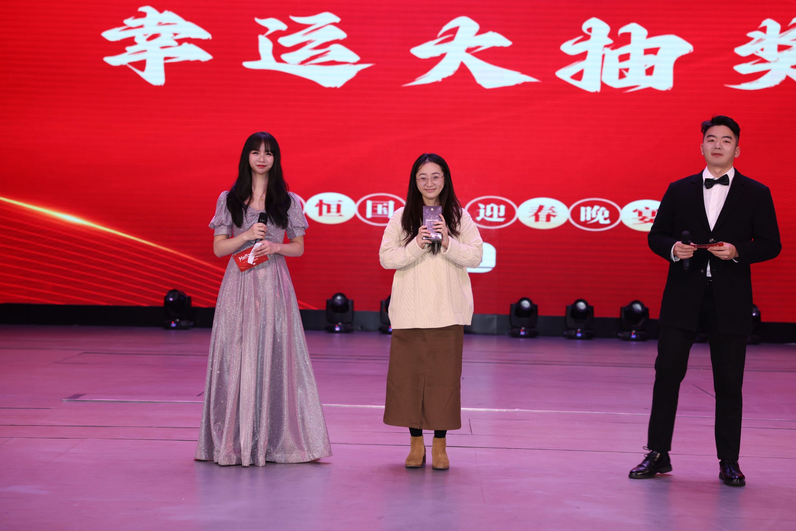 本次晚會不僅準備了精彩的游戲——蒙眼吃香蕉與瓜子接龍,還有大屏幕滾動抽獎、獨唱表演,以及驚喜福袋。游戲環節大家積極參與,團隊配合,默契十足;抽獎環節滿懷期待,中獎者無比欣喜,臉上洋溢出燦爛的笑容;獨唱環節掌聲不斷,大家沉浸其中,意猶未盡,節目一波接一波;最后每桌都在尋找驚喜福袋,并收到了驚喜感滿滿的禮物。