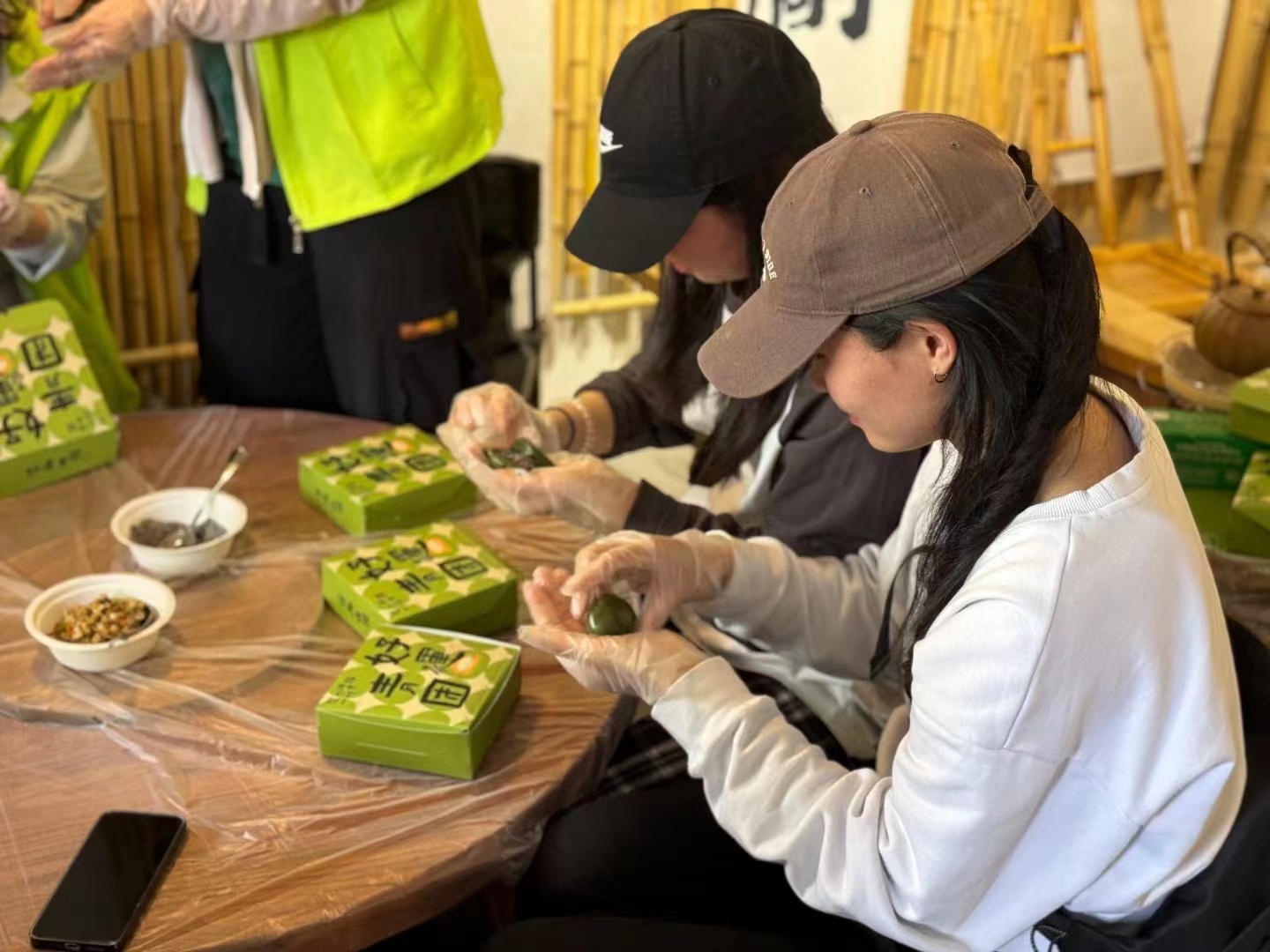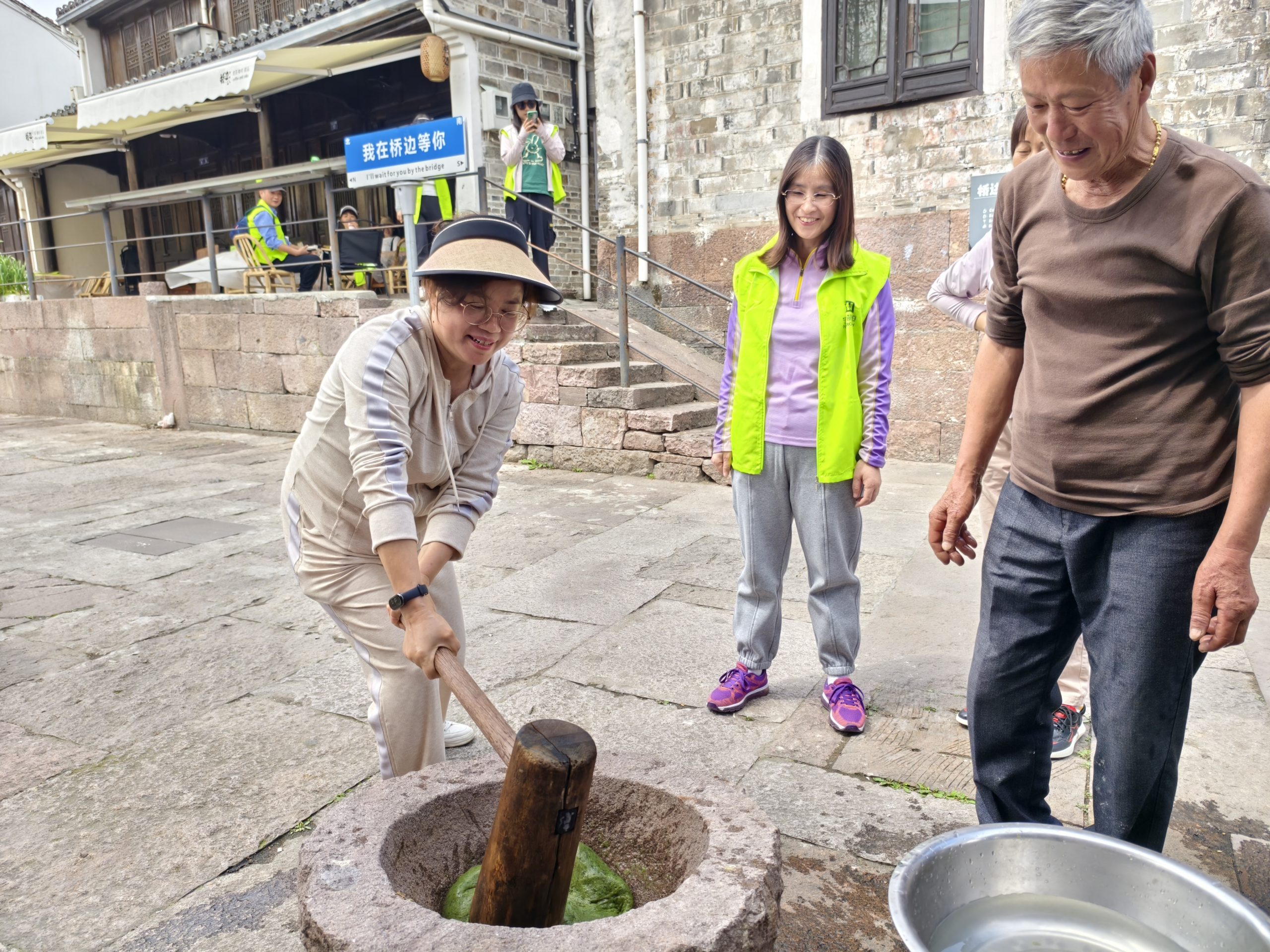 下午,大家親自上手體驗青團(tuán)制作的過程,品嘗春天的味道。將拌上艾青汁的糯米團(tuán)在石臼中搗熟,掐一個面團(tuán),將自己喜歡的餡料包裹其中,一個綠色的青團(tuán)就完工了。軟糯可口,清香撲鼻,特別是自己親手做的,顯得更加美味。活動也在歡聲笑語和大快朵頤中進(jìn)入尾聲。