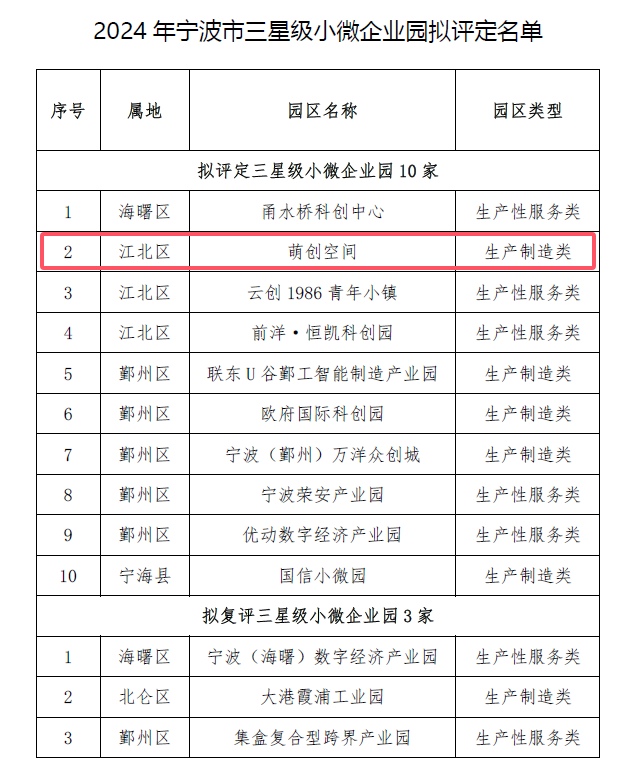 近日,寧波市三星級小微企業(yè)園名單公布,我司萌創(chuàng)空間順利通過區(qū)市兩級審核、評定,經(jīng)公示后成功入選。此次公布名單共包括10家小微企業(yè)園和3家復(fù)評小微企業(yè)園。