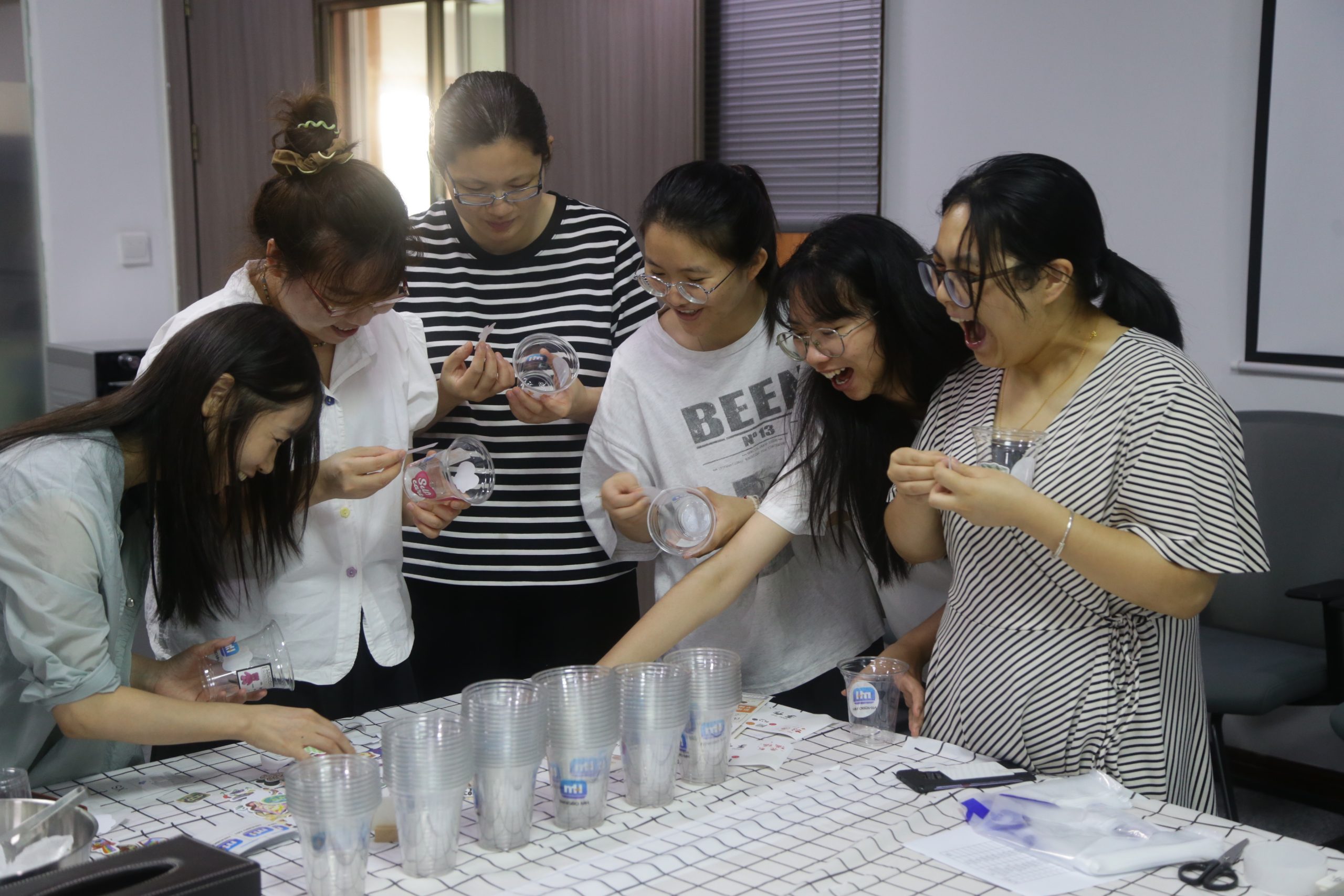 中午時(shí)分,小伙伴們興致勃勃地來到活動(dòng)場地,面對(duì)一溜兒的冰爽飲品、可口小料,手指大動(dòng),紛紛發(fā)揮奇思妙想,制作萌恒限定的特調(diào)冰品,創(chuàng)意無限。一眨眼的功夫,橙香茉莉、荔枝氣泡水、維C美式、冰搖葡萄烏龍、茉香奶綠就做好了……大家的手上捧著冰品,臉上洋溢著笑容,互相分享各自的特調(diào),現(xiàn)場一片和樂的氛圍。