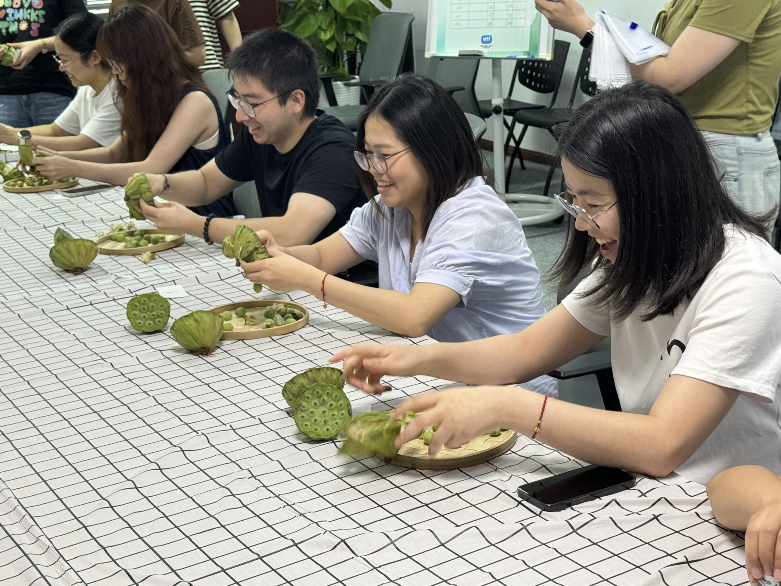 如果說冰品DIY和價(jià)值觀套圈是暖場和熱身,那剝蓮子大賽則迎來了整場活動(dòng)的高潮,帶領(lǐng)大家體驗(yàn)了一番速度與激情。30名選手分為六組進(jìn)行比賽。選手們各就各位,嚴(yán)陣以待,隨著裁判的一聲令下,迅速進(jìn)入狀態(tài),全力以赴,爭取在一分鐘之內(nèi)撥出最多的蓮子。
