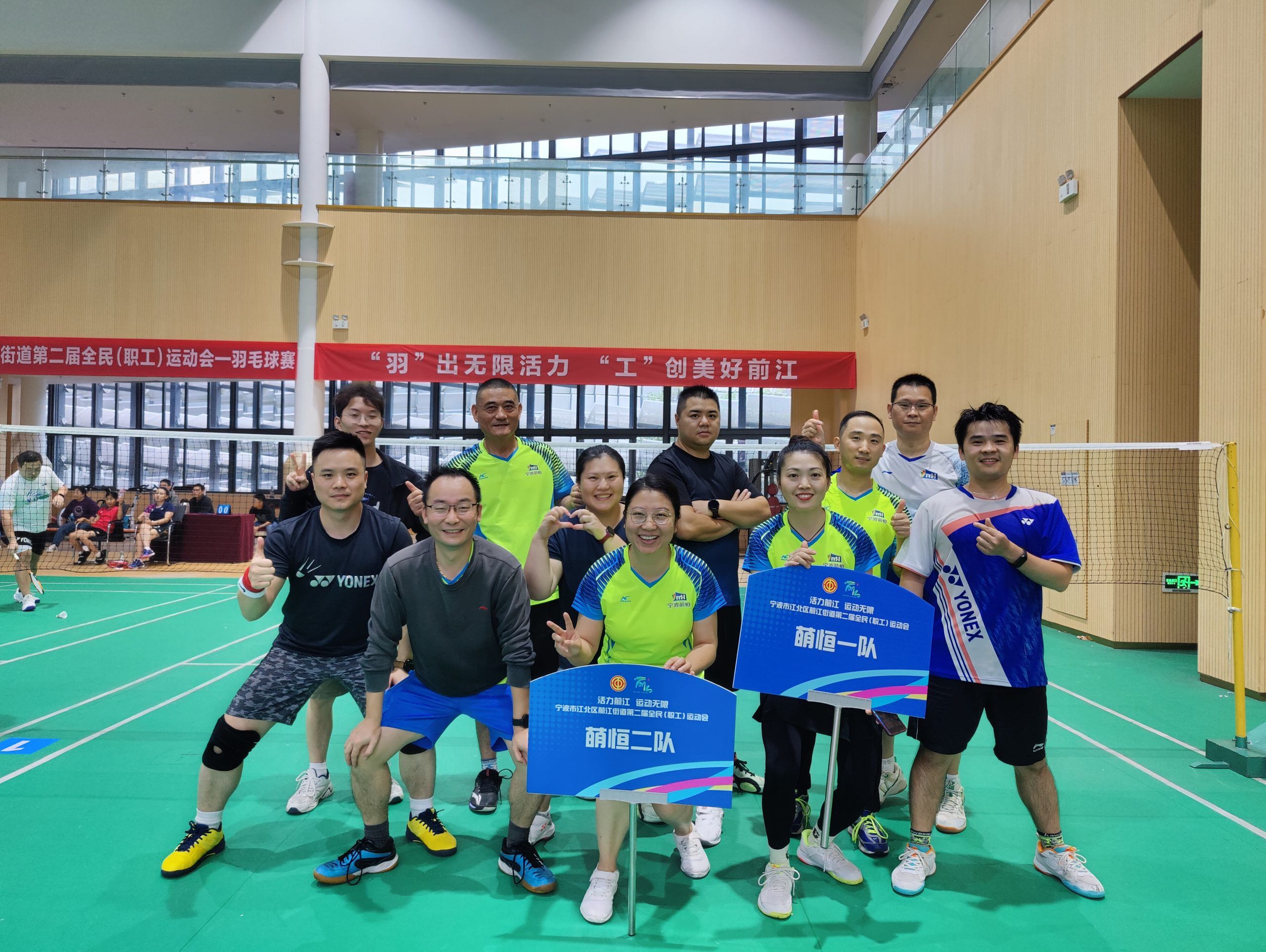 近日,江北區前江街道第二屆全民(職工)運動會羽毛球賽在寧波前洋E小鎮羽毛球館舉行。在這場匯聚各路高手的賽事中,萌恒羽毛球健兒們憑借頑強的拼搏精神和出色的技巧表現脫穎而出,榮獲團體第三名和第六名。
